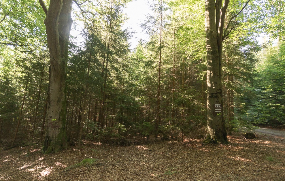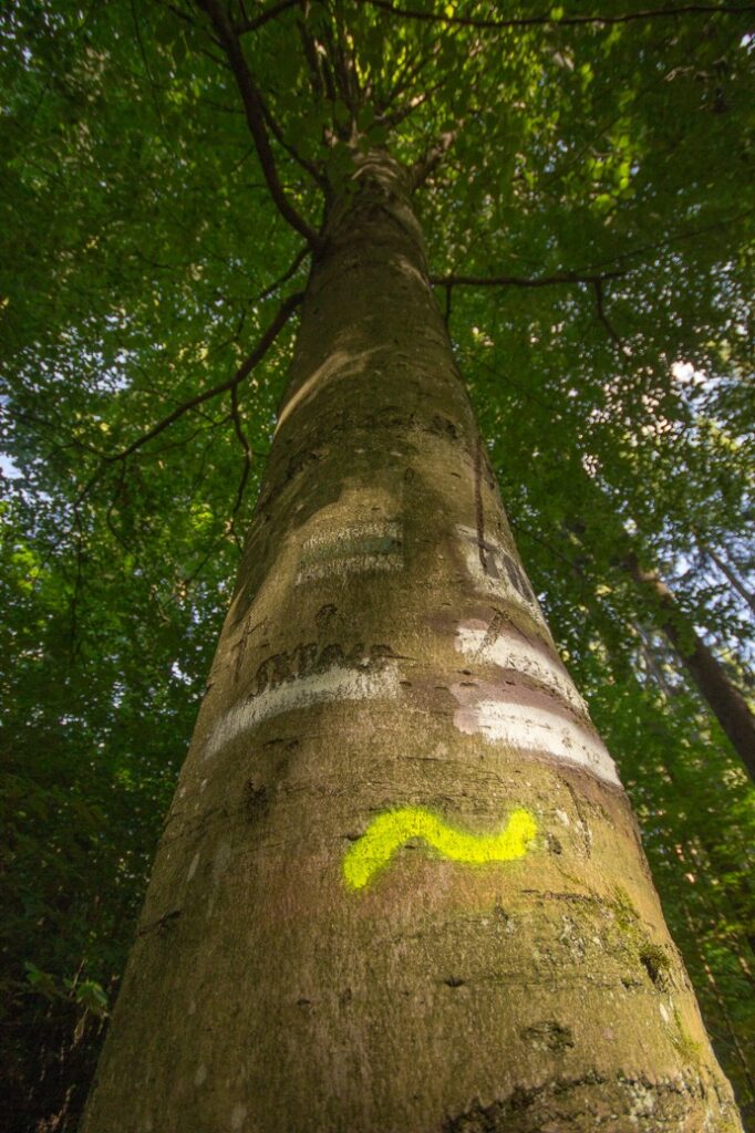 „Nárožní buk“ s označením biotopového stromu pod Kuní horou.