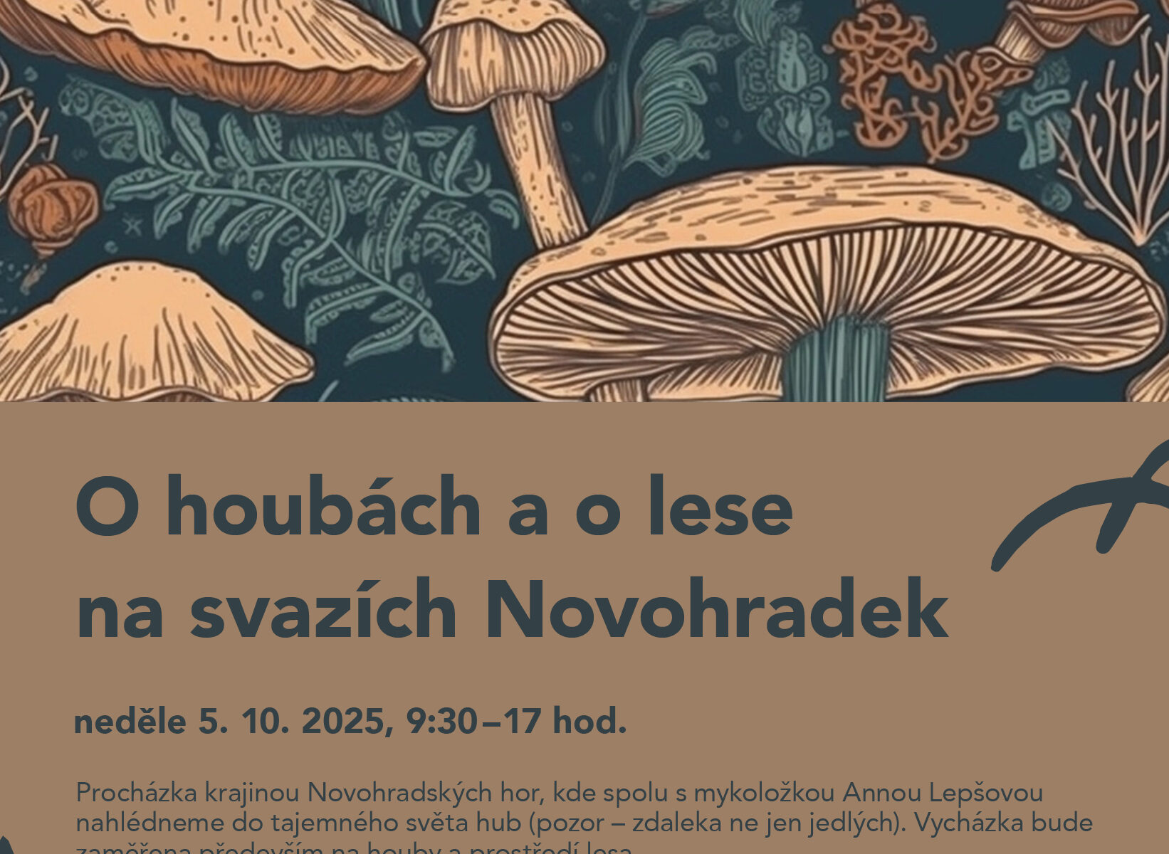 Srdečně zveme na procházku krajinou Novohradských hor, kde spolu s mykoložkou Annou Lepšovou nahlédneme do tajemného světa hub.